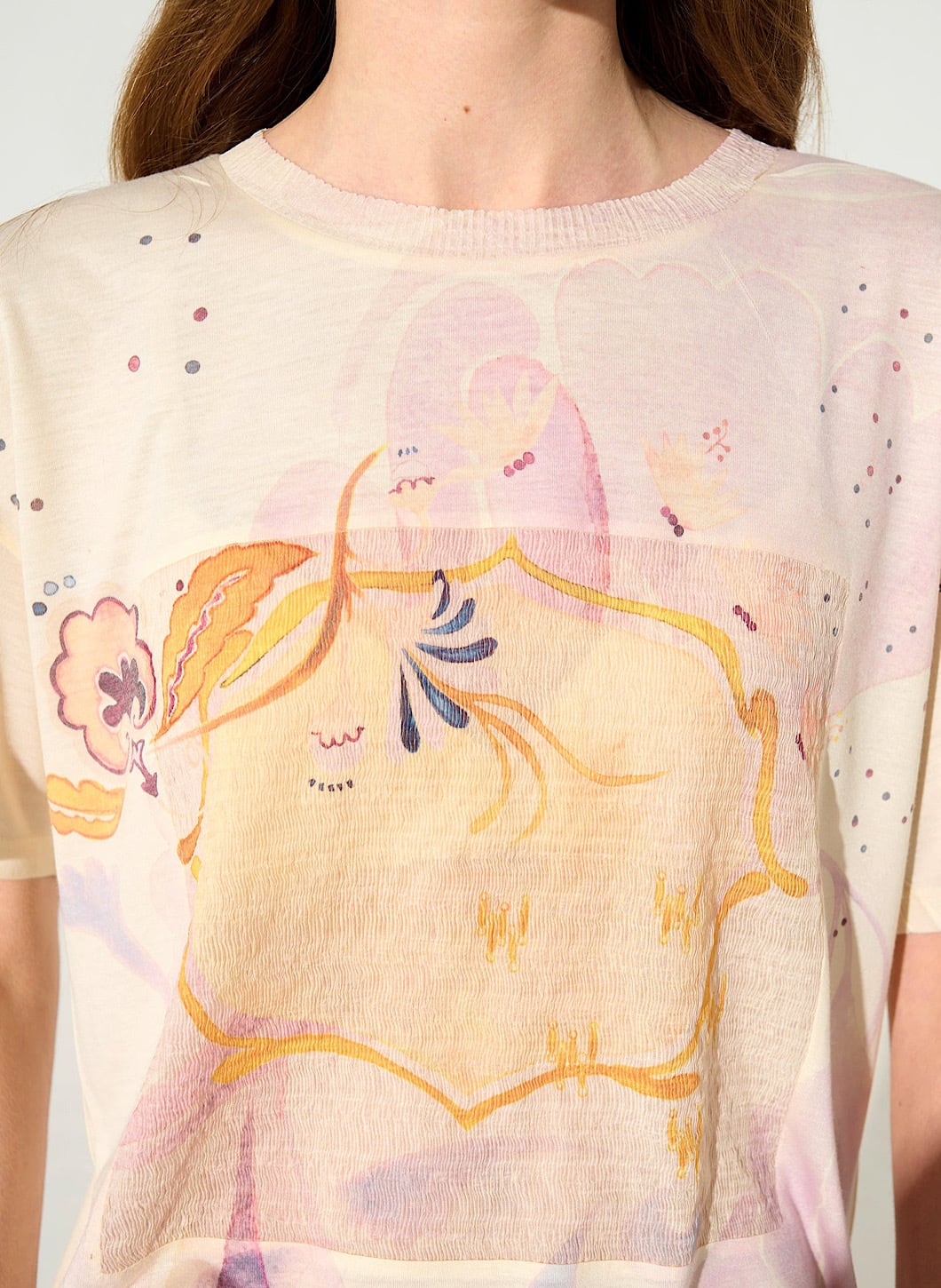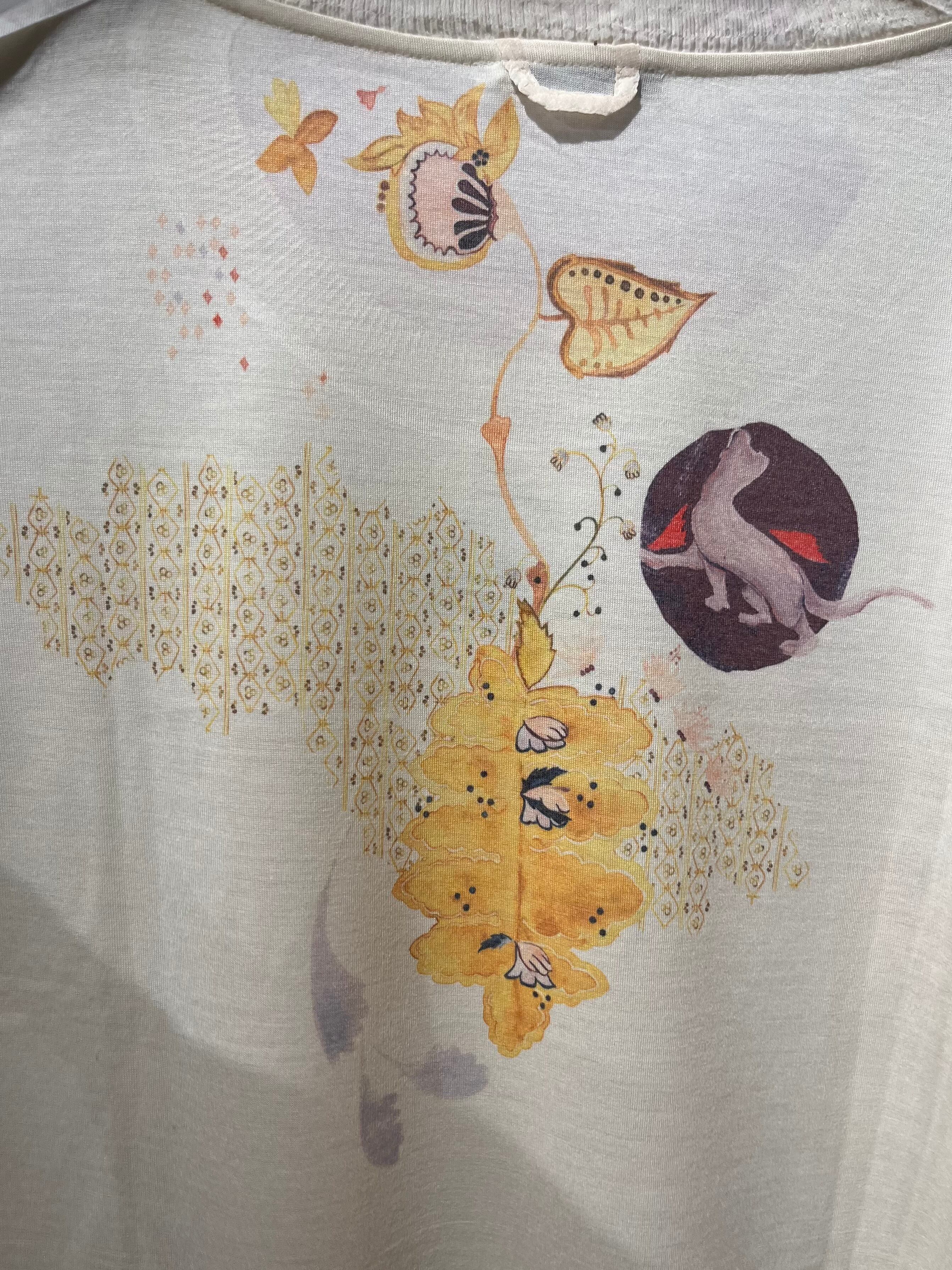 柔らかな色彩を使用したプリント柄と、レーヨンの優しい肌あたりで快適な着心地を実現しました。