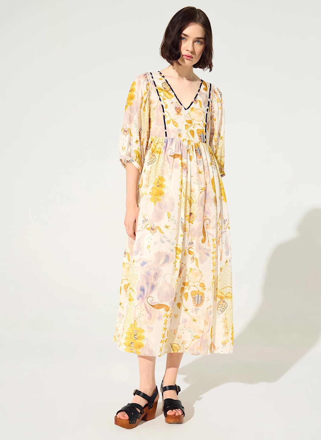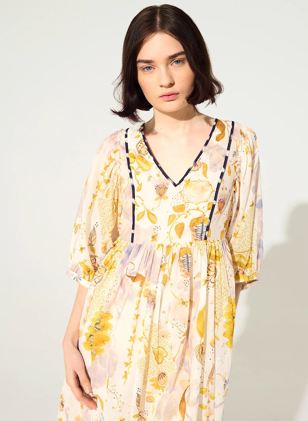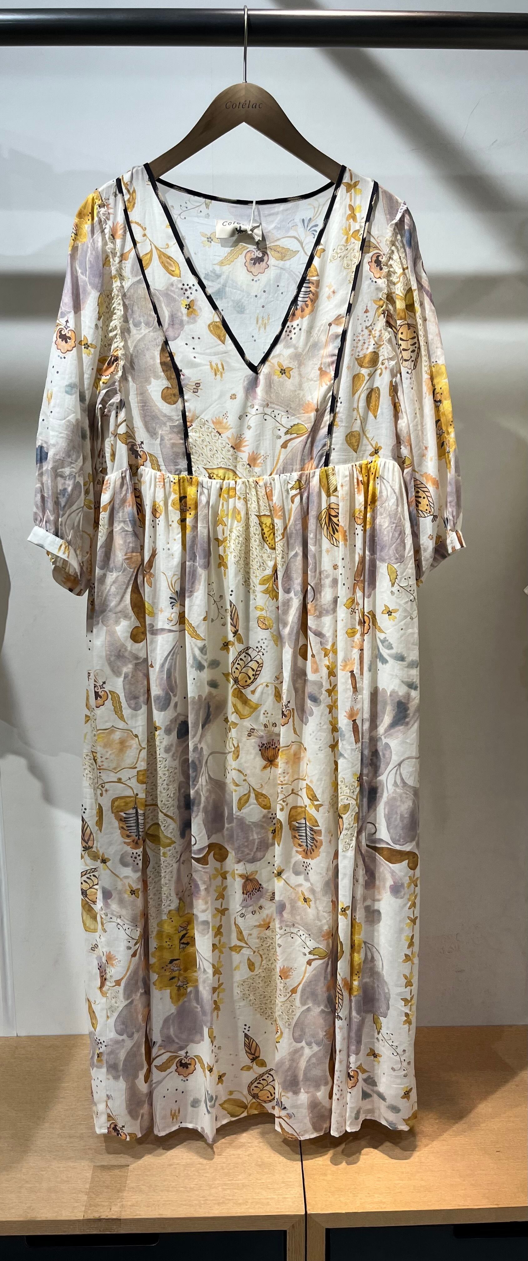 生地の光沢感とプリントの上品さが今年の春夏を華やかに彩ってくれる1着。
