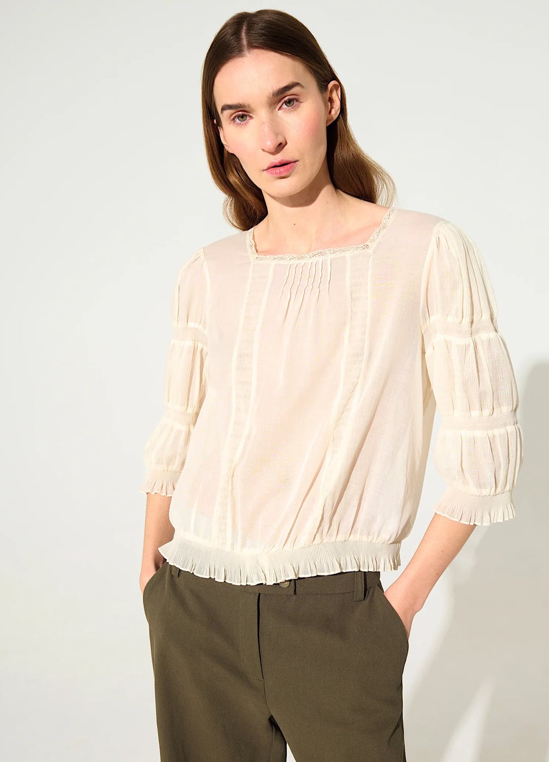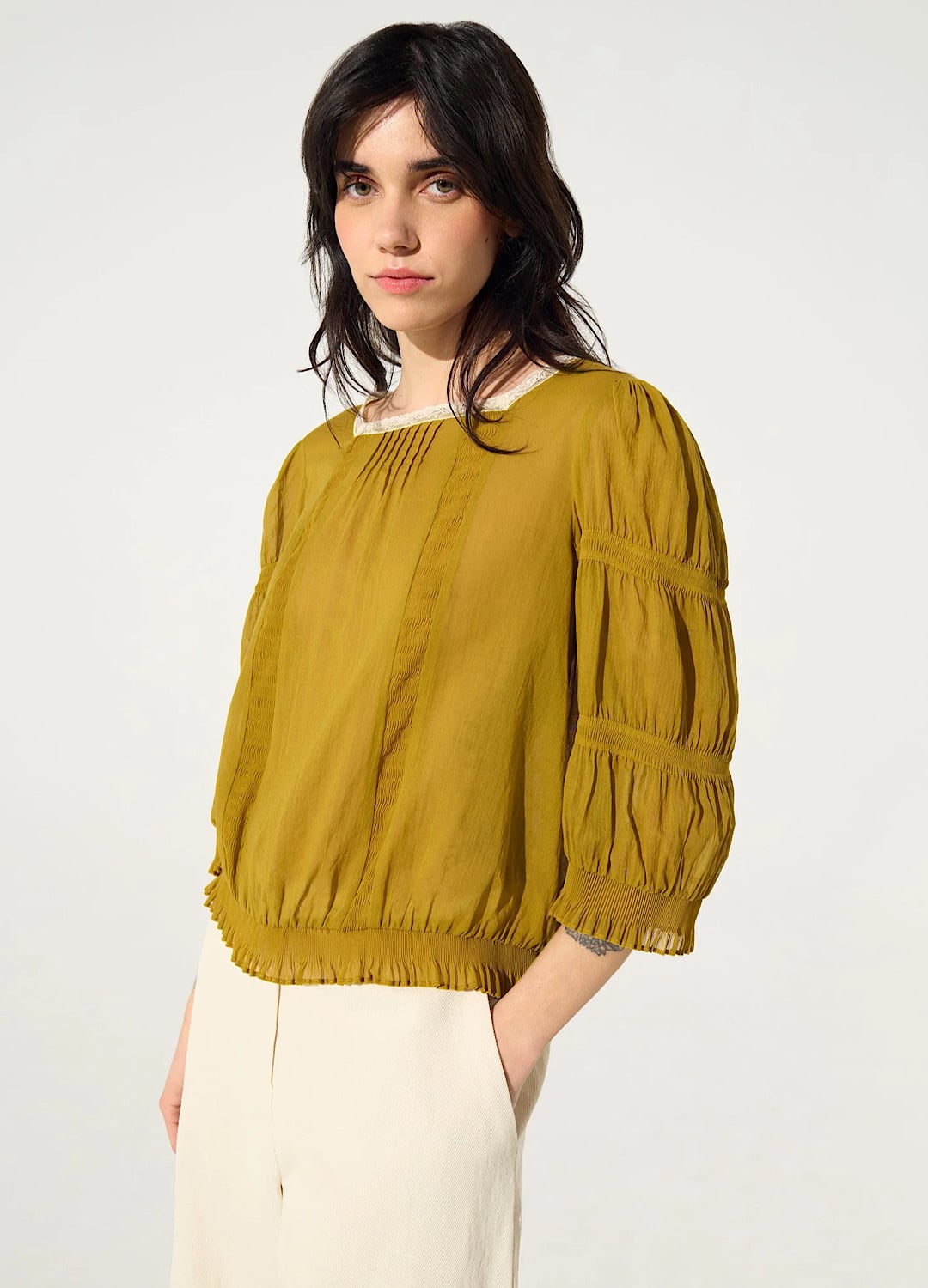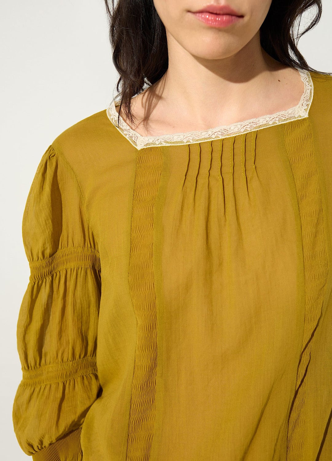 フランス・リヨン発祥のカレーレースを絶妙な分量であしらい、高級感あふれるカレーレース・シャツです。