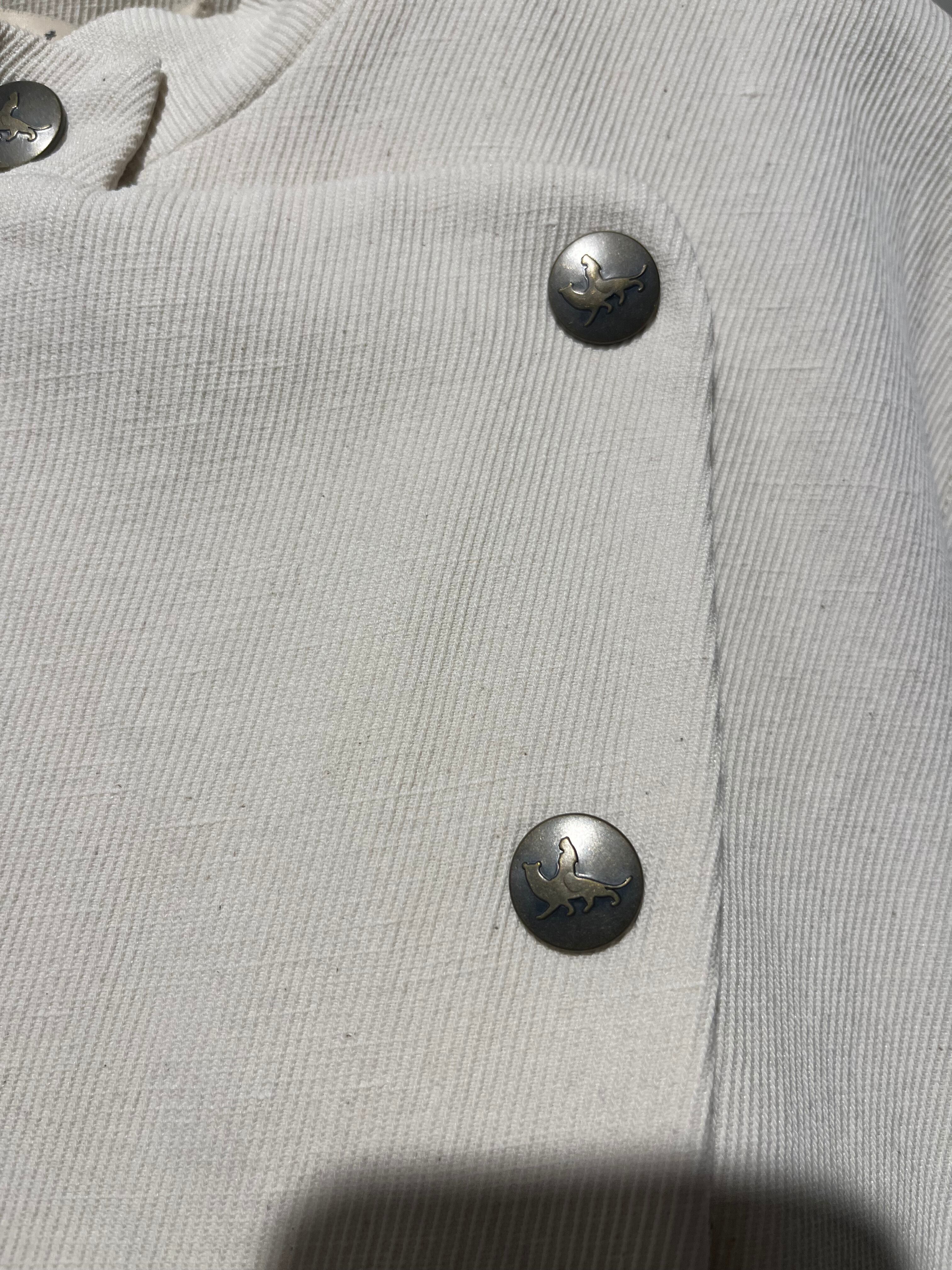 前見頃にあしらわれている、ダブルボタンが特徴的で、更にコテラックのロゴマークのボタンが、さりげないアクセントとして魅力を引き立てています。