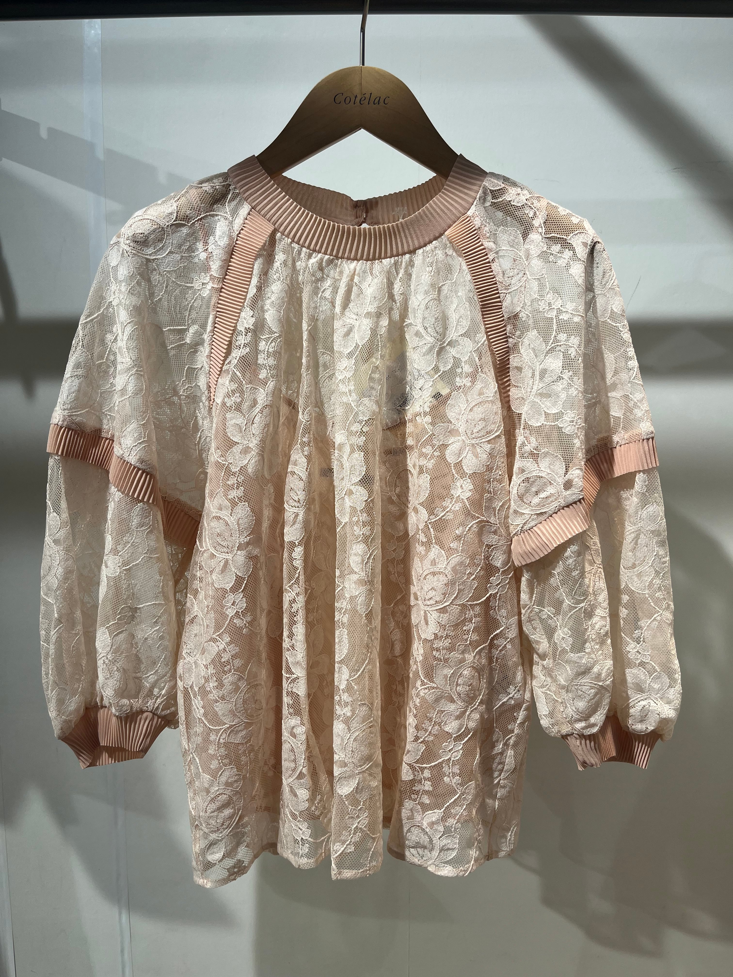 繊細な花柄レースと優しい肌馴染みの良いプリーツが見事に調和した、フラワーレースブラウスです。