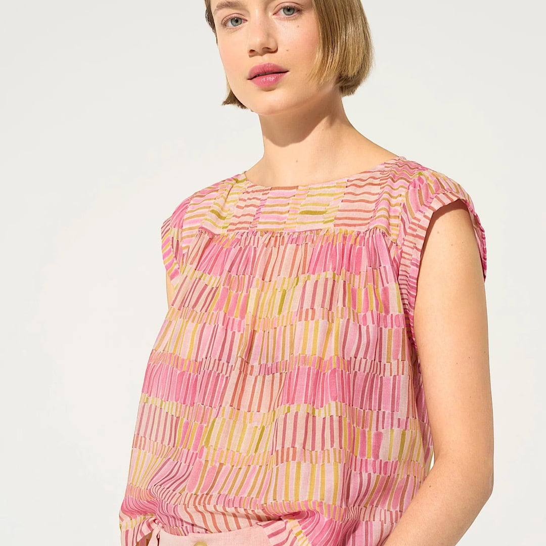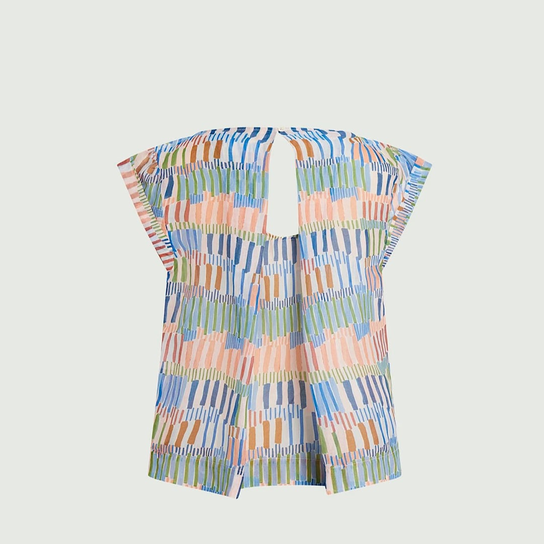 軽やかな素材感で、暑い夏の日にもぴったりなアイテムです。 バックスタイルのさりげない背中の開きも、更に清涼感UP!