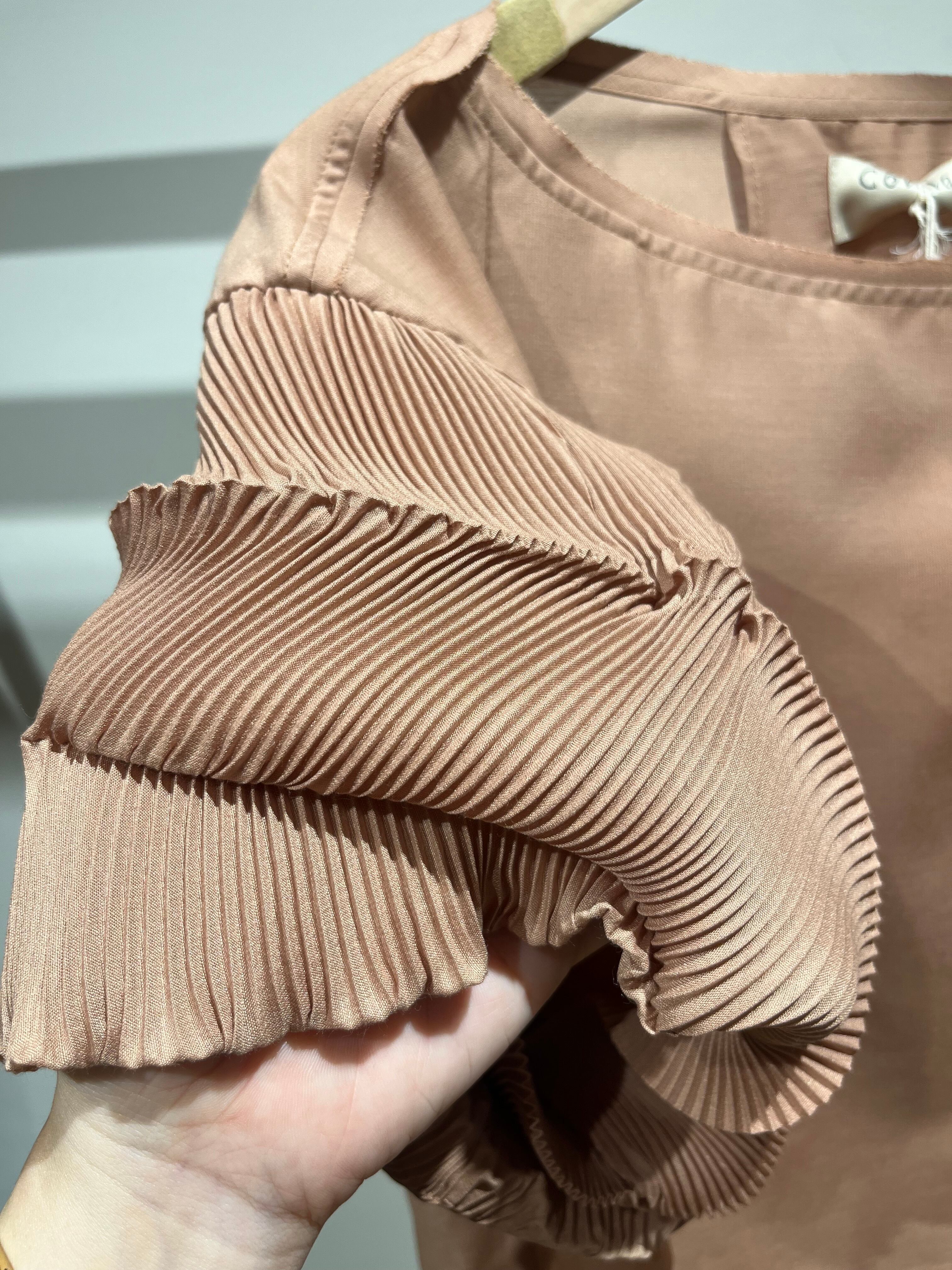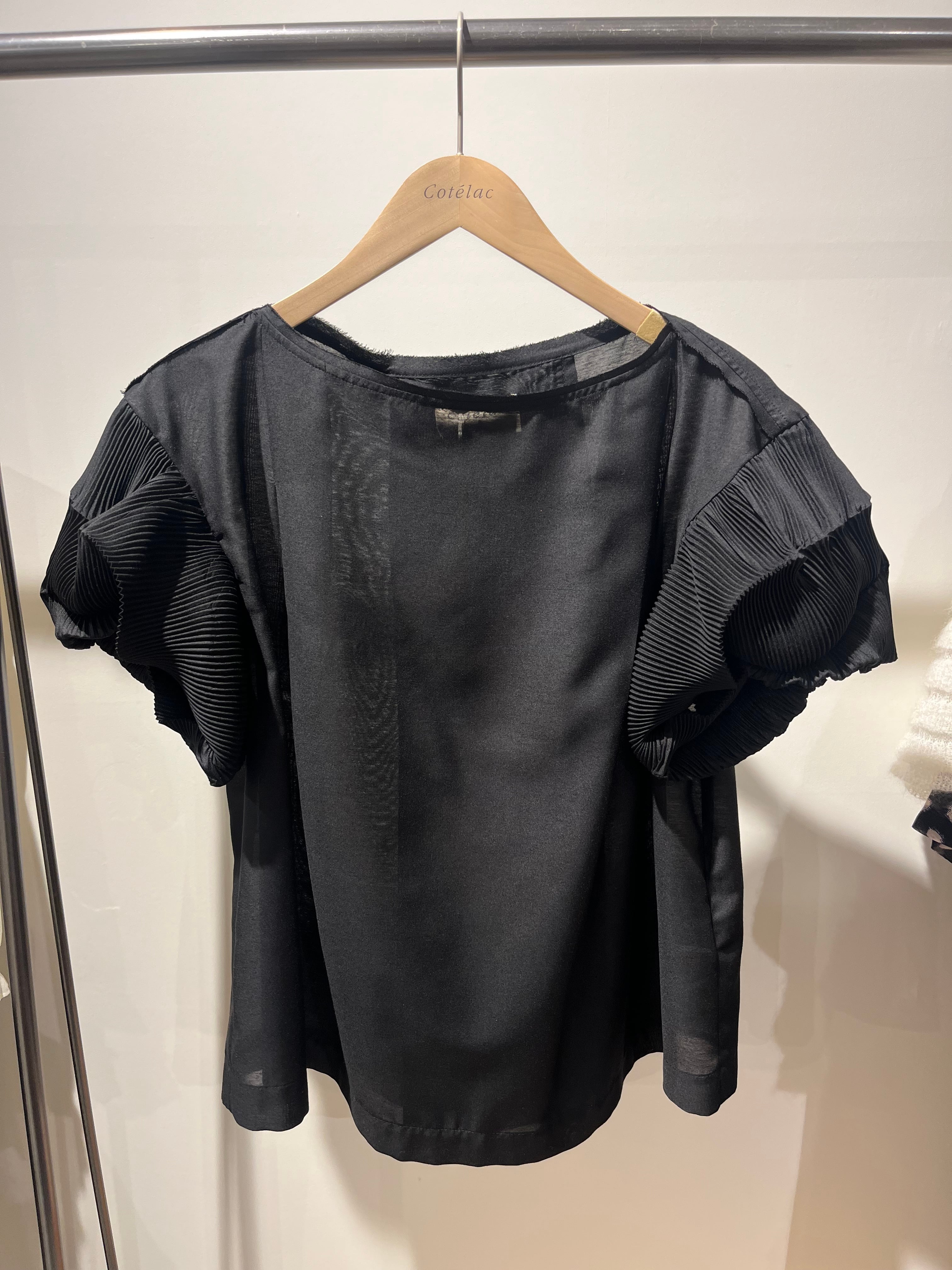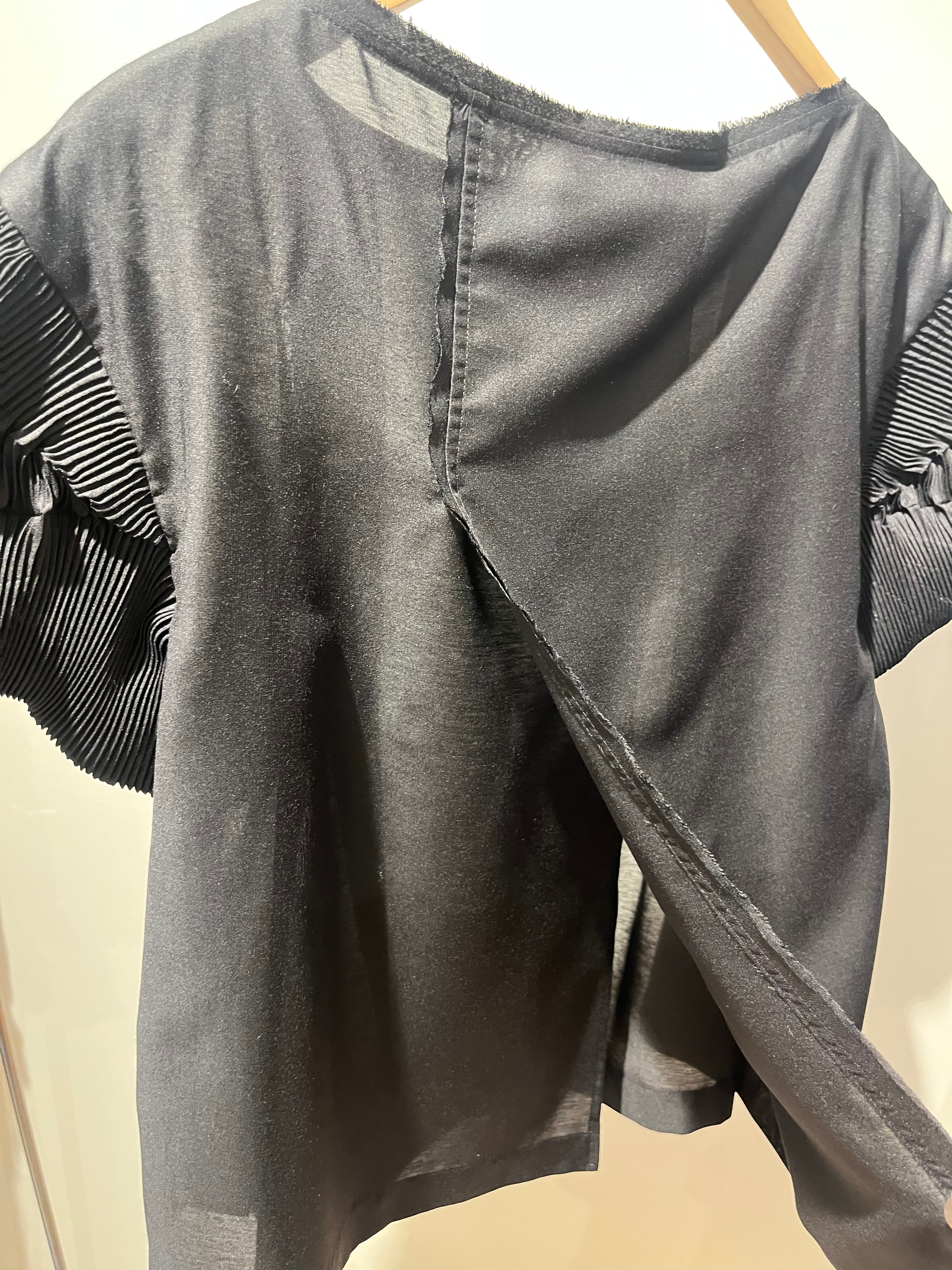 職人の手作業による、クチュールスタイルのクリスタルプリーツが施されたプリーツ加工のブラウスです。