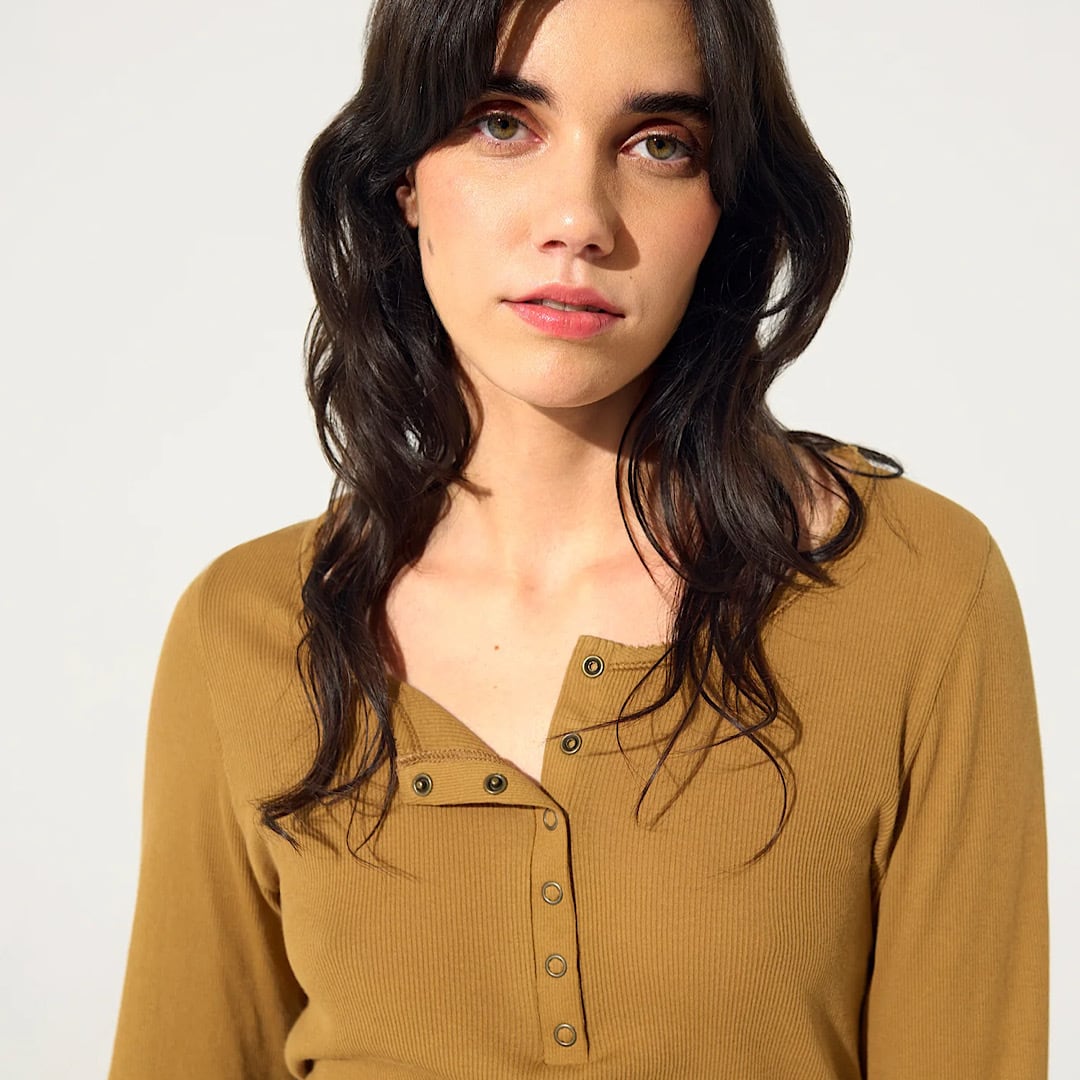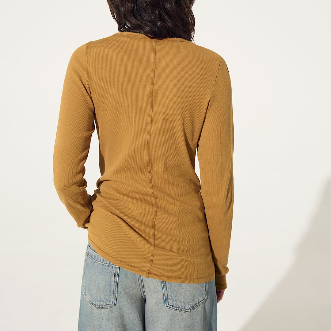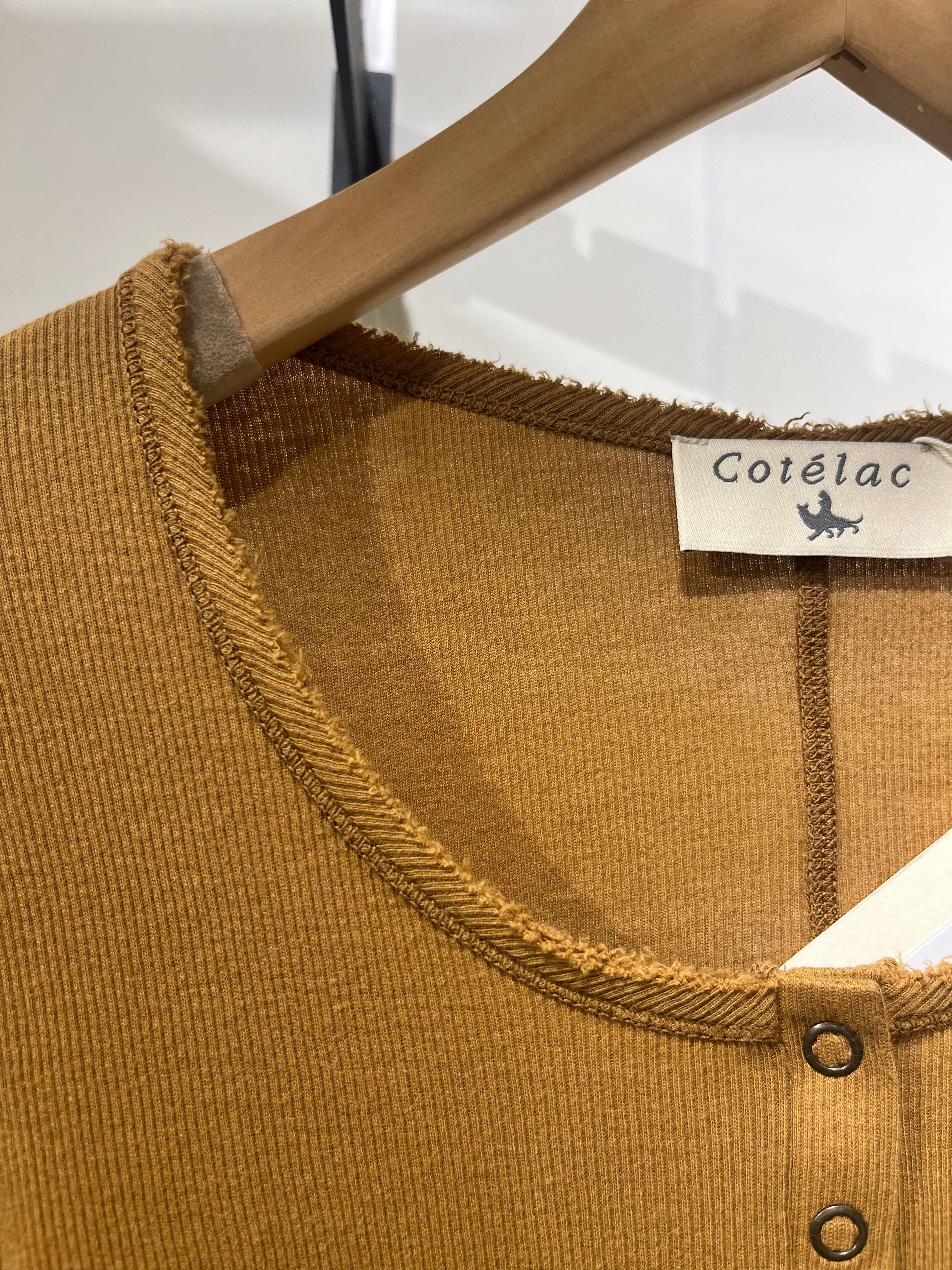 オーガニックコットンを使用したリブ編みカットソーは、優しい肌触りが特徴です。