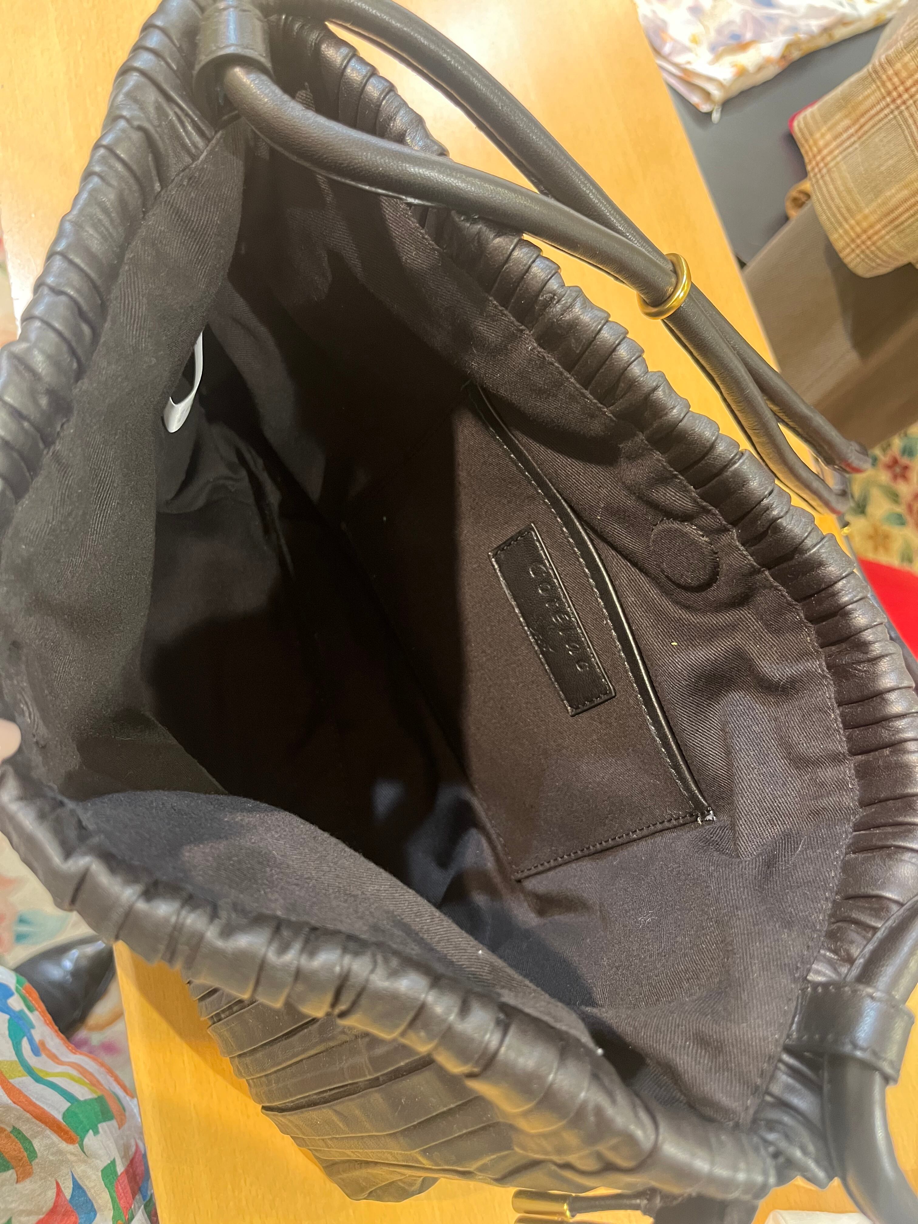 とても軽量でシープスキンならではの柔らかさが特徴的なバッグ。 色展開は2合わせやすい黒と、ブロンズカラーの2色展開。