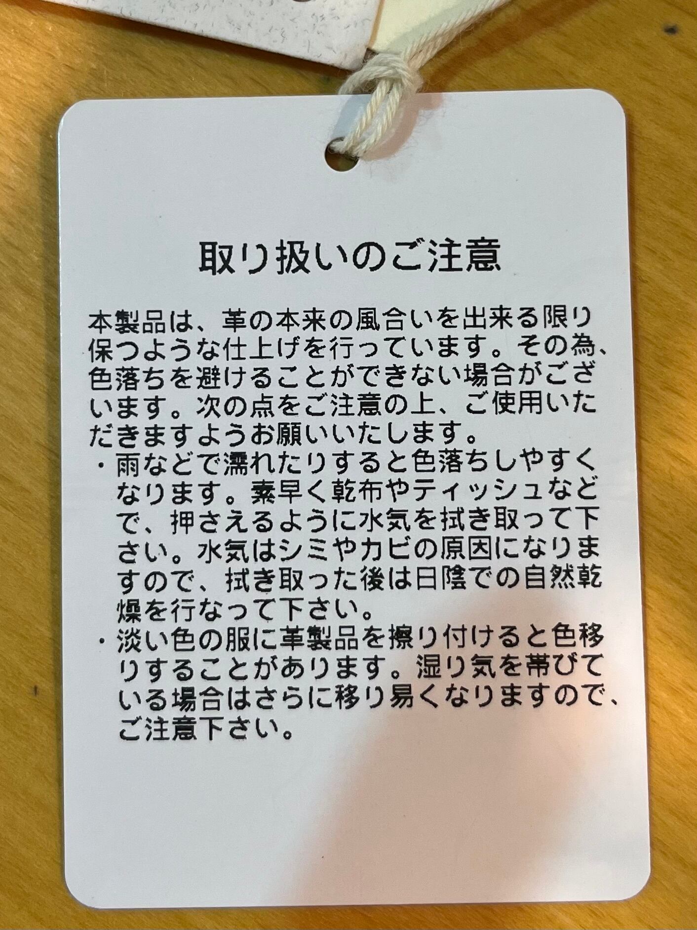 本製品は、革の本来の風合いを出来る限り保つような仕上げを行なっています。その為、色落ちを避ける事ができない場合がございます。次の点をご注意の上、ご使用いただきますようお願い致します。